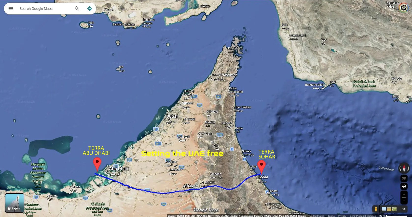 USA & Allies should take note, because not even Alexander the Great, saw this. These TERRA plants must be setup, and the 5,000 year squeeze and piracy at the Strait of Hormuz has to end by building The UAE-OMAN Canal. WE can secure Earth global bloodflow for all commerse. This is a INTERNATIONAL SECURITY crisis. America First Forever.